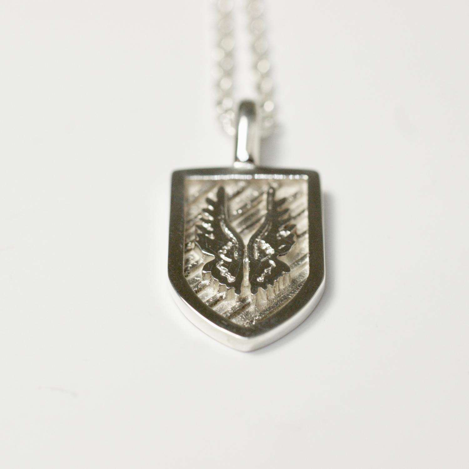 Halsband med tillhörande kedja, tillverkad i 925 sterling silver. Finns i flera längder. Sköldens mått: Längd: ca 20 mm, Bredd: ca 14 mm.